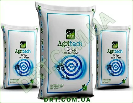 Агритек дрип - полный ряд комплексных водорастворимых удобрений с высокой кислотностью, разработанных специально для применения в системах капельного орошения (фертигации) открытого и закрытого грунтов.