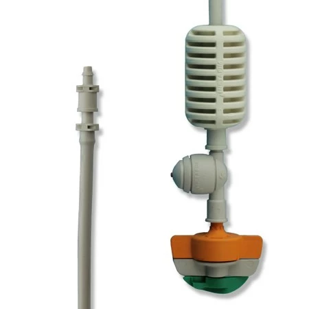 - Строго рекомендуется присоединять микроспринклер SpinNet™ к распределительной трубе с микротрубкой, изготовленной и сверхмягкого полиэтилена, со специально рассчитанной нагрузкой и антидренажным клапаном, который предотвращает высушивание распределительной трубы.